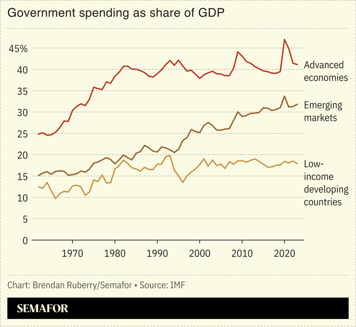 現在、「緊縮財政への政治的意欲はほとんどない」とエコノミスト誌は記す。富裕国は苦境にある有権者への増税を渋る一方、防衛費や高齢化社会向け社会サービスへの支出増圧力を受けている。