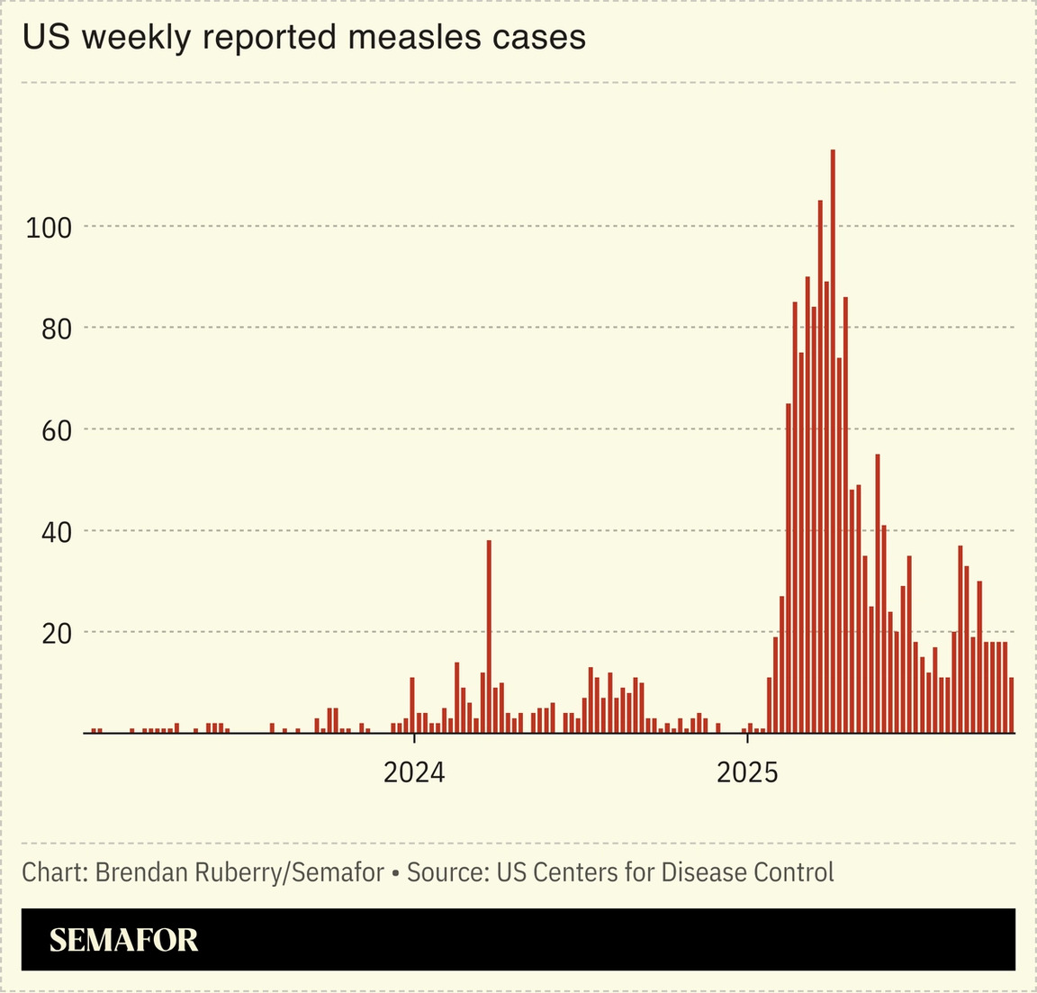 米国では2000年に麻疹の根絶が宣言されたが、今年は1500件以上の確定症例(大半がテキサス州)と2人の死亡が確認されている。かつて制御が確立されたと考えられていた百日咳も同様に増加傾向にある。
