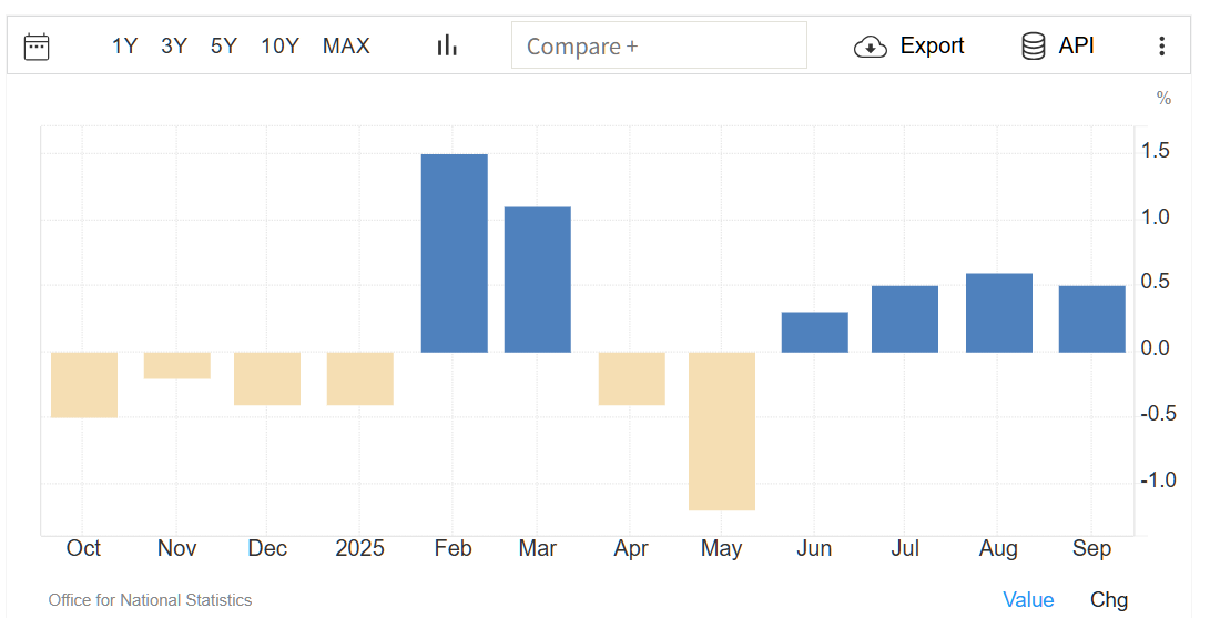 9月のイギリスの小売売上高は前月比0.5%増