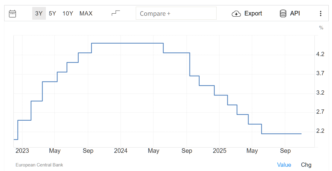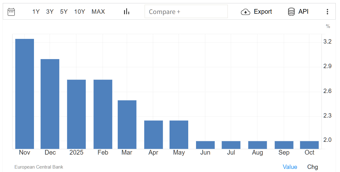 出典:欧州中央銀行/TRADING ECONOMICS(10月30日22:1 5)