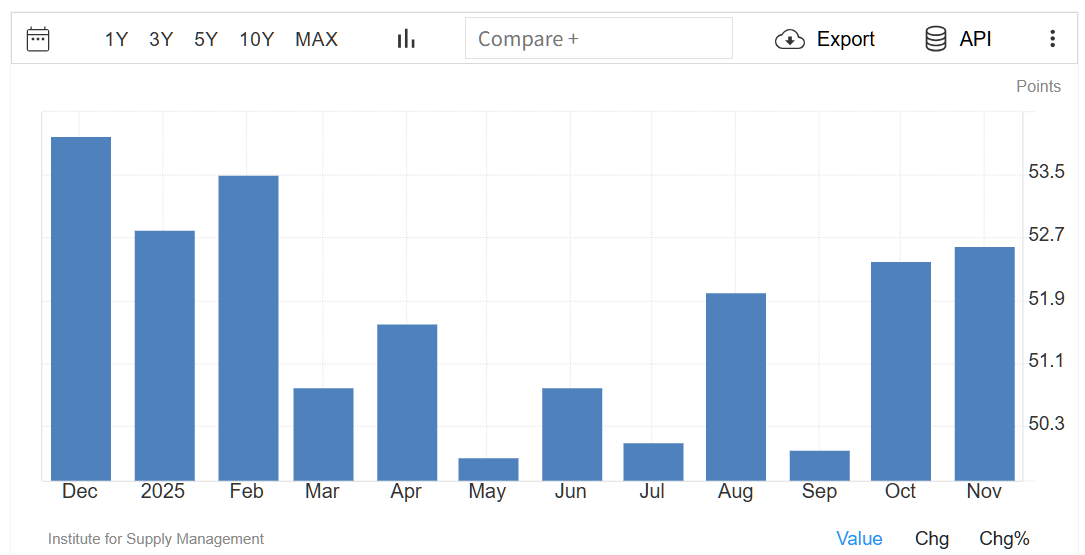 出典:サプライマネジメント協会/TRADING ECONOMICS(12月4日00:00)