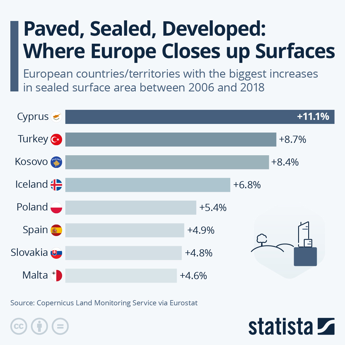 舗装、舗装、開発:ヨーロッパが地表を封鎖する場所