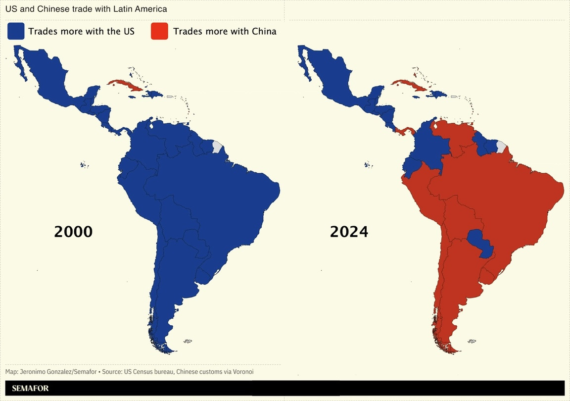 ラテンアメリカ諸国の対中輸出は、米国の関税措置にもかかわらず昨年急増し、多くの国が最大の商品市場として中国への依存度を高めている。