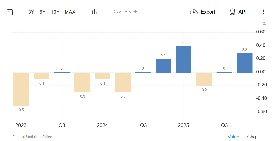 前年同期比では、GDPは1.1%上昇し、第3四半期の0.9%から加速したものの、予想の1.2%をわずかに下回った。それでも、過去5四半期で最も力強い年間成長率を記録した。