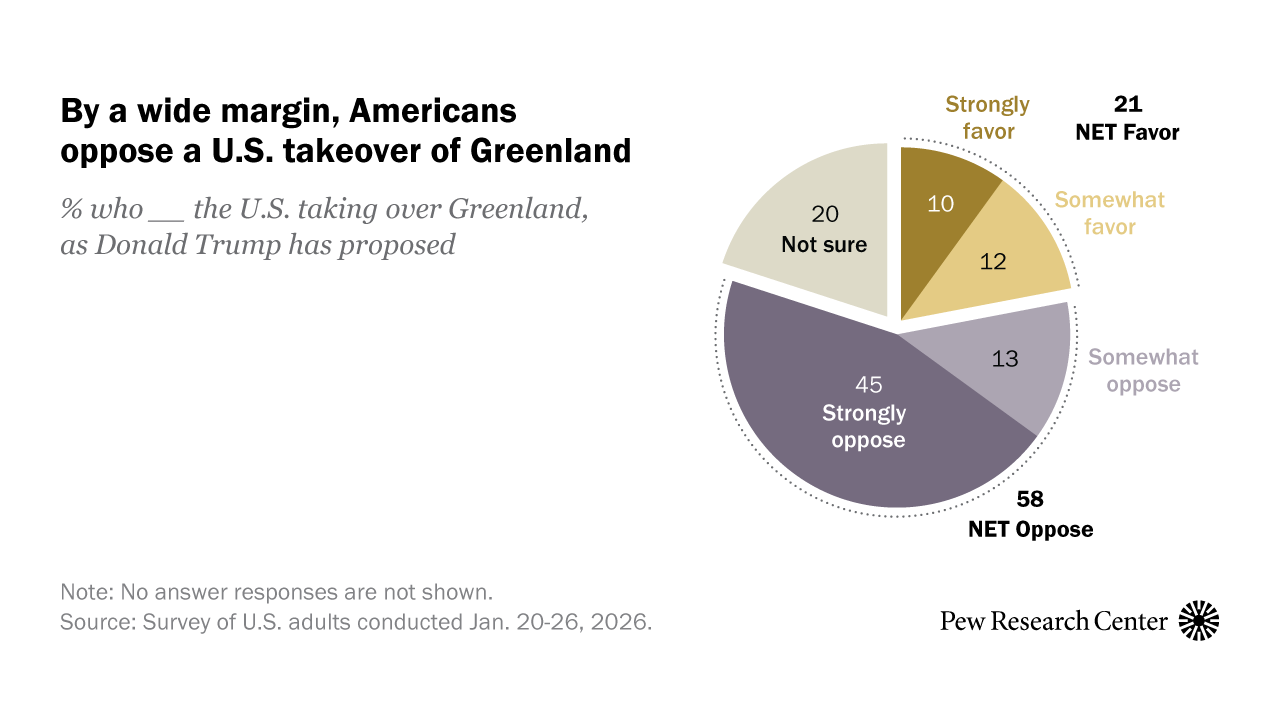 ドナルド・トランプ大統領が提案したグリーンランドの米国による買収を支持するアメリカ人は、反対するアメリカ人よりもはるかに少ない(58% 対 21%)。