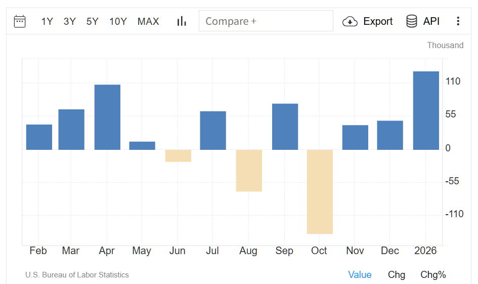 米国経済は、2026年1月に13万人の雇用者数が増加した。これは、12月の下方修正された4万8000人増を大幅に上回り、7万人増の予測を大きく上回った。