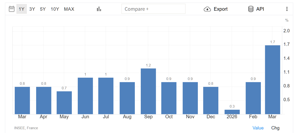 イタリアとフランスは今週、インフレ率のデータを発表する予定だ。欧州中央銀行(ECB)は利上げを検討しているが、アナリストらは、イラン戦争によって物価上昇が需要を圧迫し、既に成長に苦しむ欧州でスタグフレーションが発生する可能性があると指摘している。