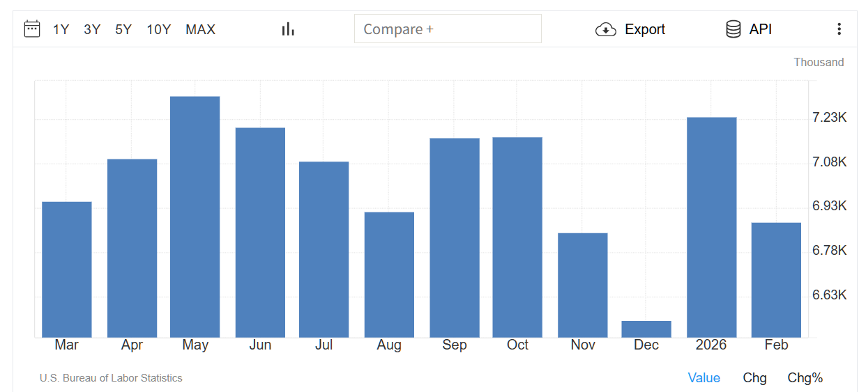 2026年2月の日本の失業率は2.6%で、1月の1年半ぶりの高水準、市場予想の2.7%を下回った。失業者数は6万人減の185万人。一方、就業者数は1万人増の6827万人、労働力人口は4万人増の7012万人となった。