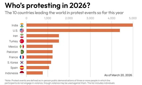 紛争追跡団体ACLEDのデータによると、ドナルド・トランプ大統領が昨年再選されて以来、米国では2万3,000件以上の政治的抗議活動が行われている。1月以降だけでも、すでに4,000件を超えている。