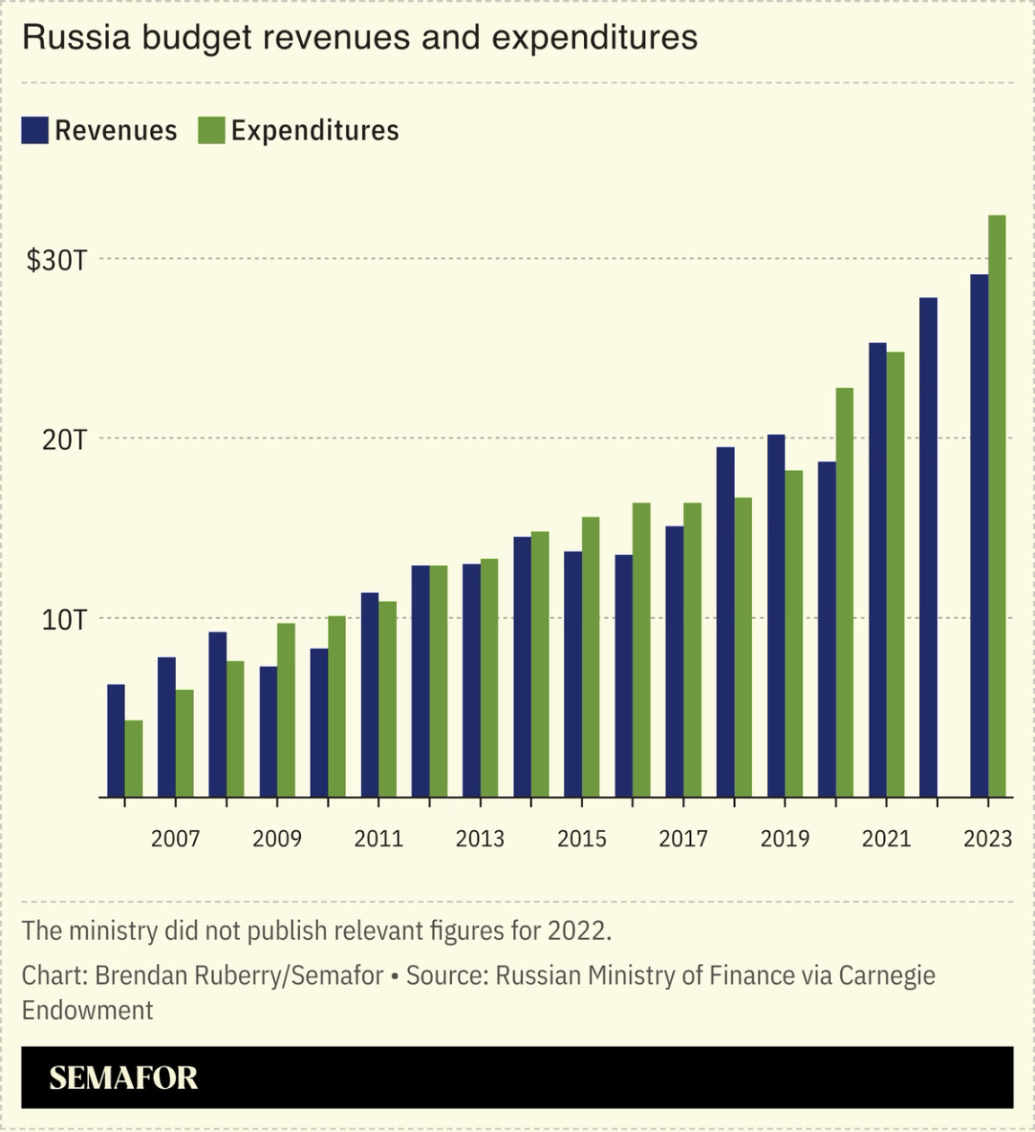 ウクライナ戦争が経済を圧迫する中、ロシアは重要な支出ルールを犠牲にする可能性があると、ザ・ベル紙が報じた。