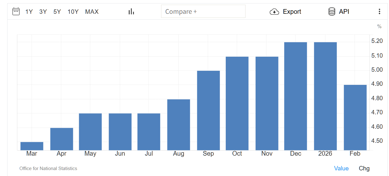 英国の失業率は、2026年2月までの3か月間で4.9%に低下し、前期の5.2%で推移するという予想を覆した。失業率の低下は経済活動不参加者の増加と同時期に発生しており、一部の英国人が新たな職を探すのではなく、労働市場から離れていることを示している。