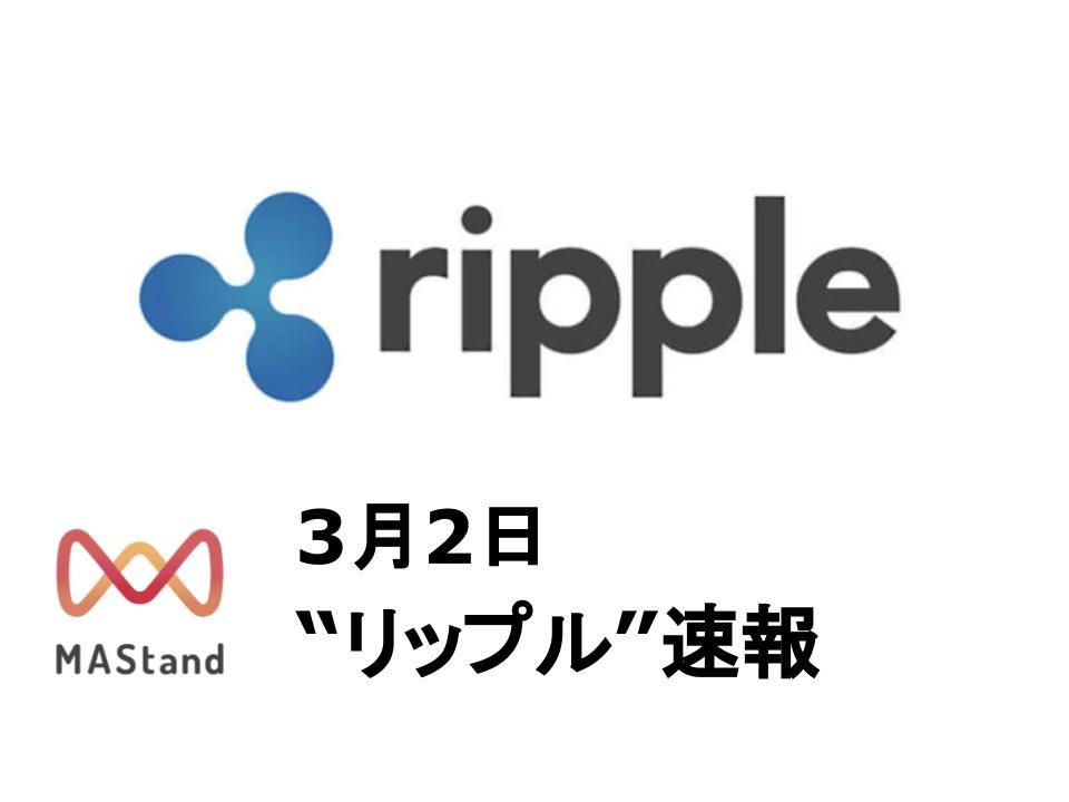 2020年3月2日(月)5時32分現在、リップルは始値0.2262米ドル(24.45円)、高値0.2262米ドル(24.45円)、安値0.2259米ドル(24.42円)、終値0.2261米ドル(24.44円)。