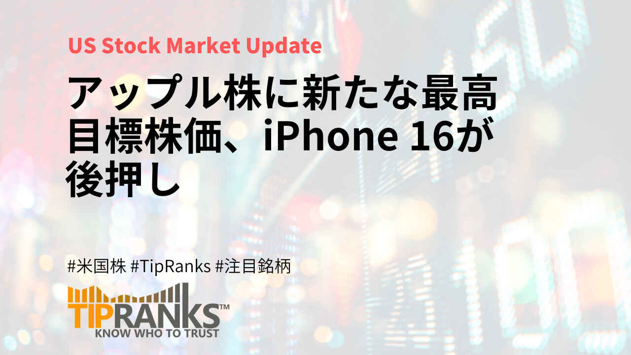 本記事は株式投資分析ツールTipRanksの許可を得て、Apple Wins a New Street-High Price Target Following iPhone 16 Launchの原文翻訳を中心にまとめています。