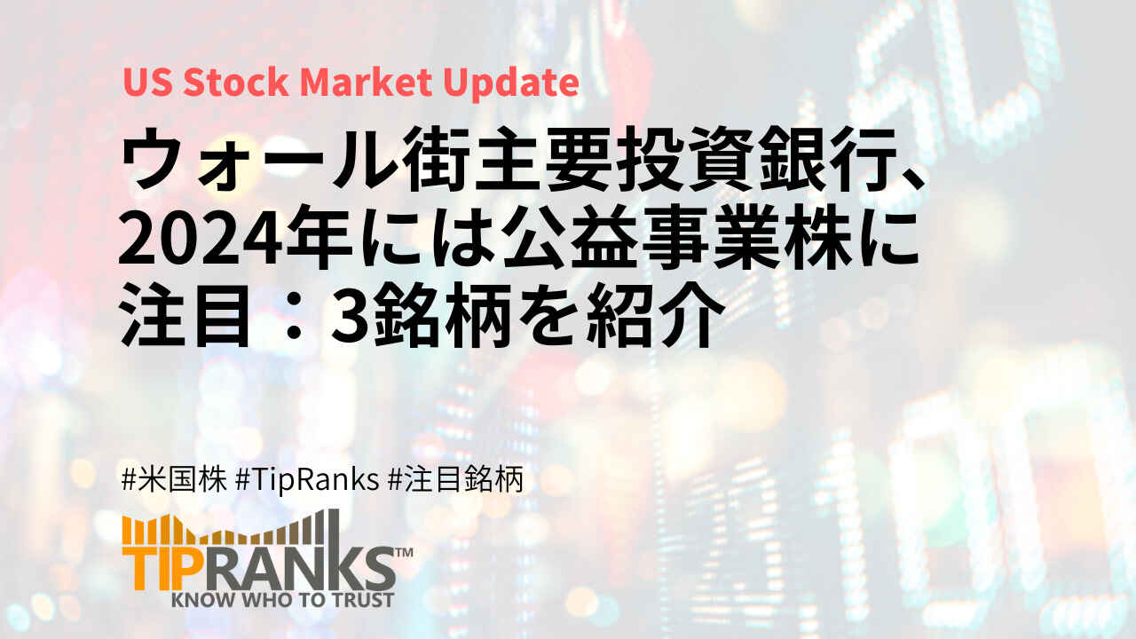 本記事は株式投資分析ツールTipRanksの許可を得て、Guggenheim Says Utilities Stocks Are a Smart Bet for 2024 – Here Are 3 Names to Consider原文の翻訳を中心にまとめています。