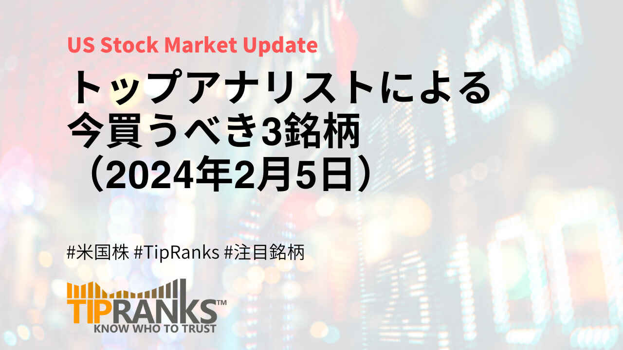本記事は株式投資分析ツールTipRanksの許可を得て、3 Best Stocks to Buy Now, 2/5/2024, According to Top Analysts原文の翻訳を中心にまとめています。